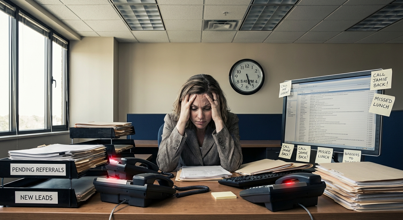 A carga administrativa tornou-se um monstro silencioso que devora 60 a 70% do tempo útil das equipas. E não estou a falar de trabalho estratégico. Estou a referir-me a verificar manualmente quais apólices vencem daqui a 30 dias, copiar dados de um sistema para outro, e perseguir clientes através de chamadas telefónicas que já deveriam ter sido feitas há três semanas.